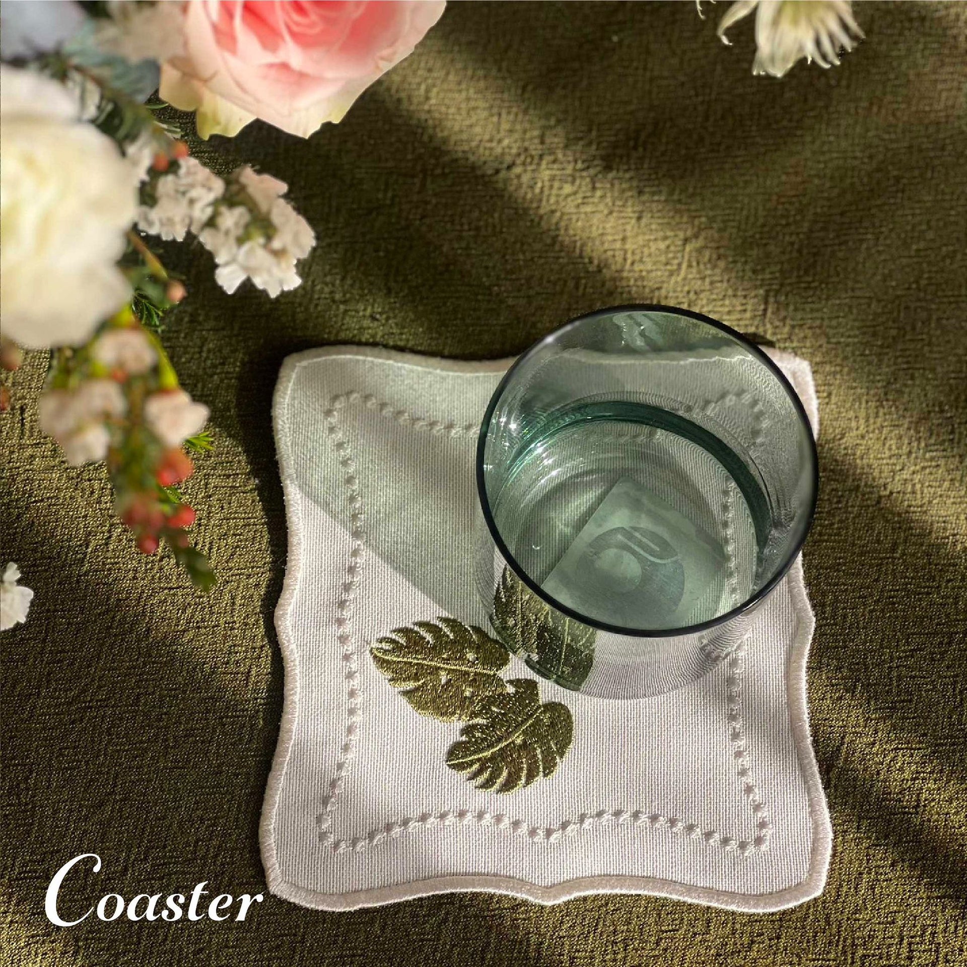 Monstera embroidered coasters