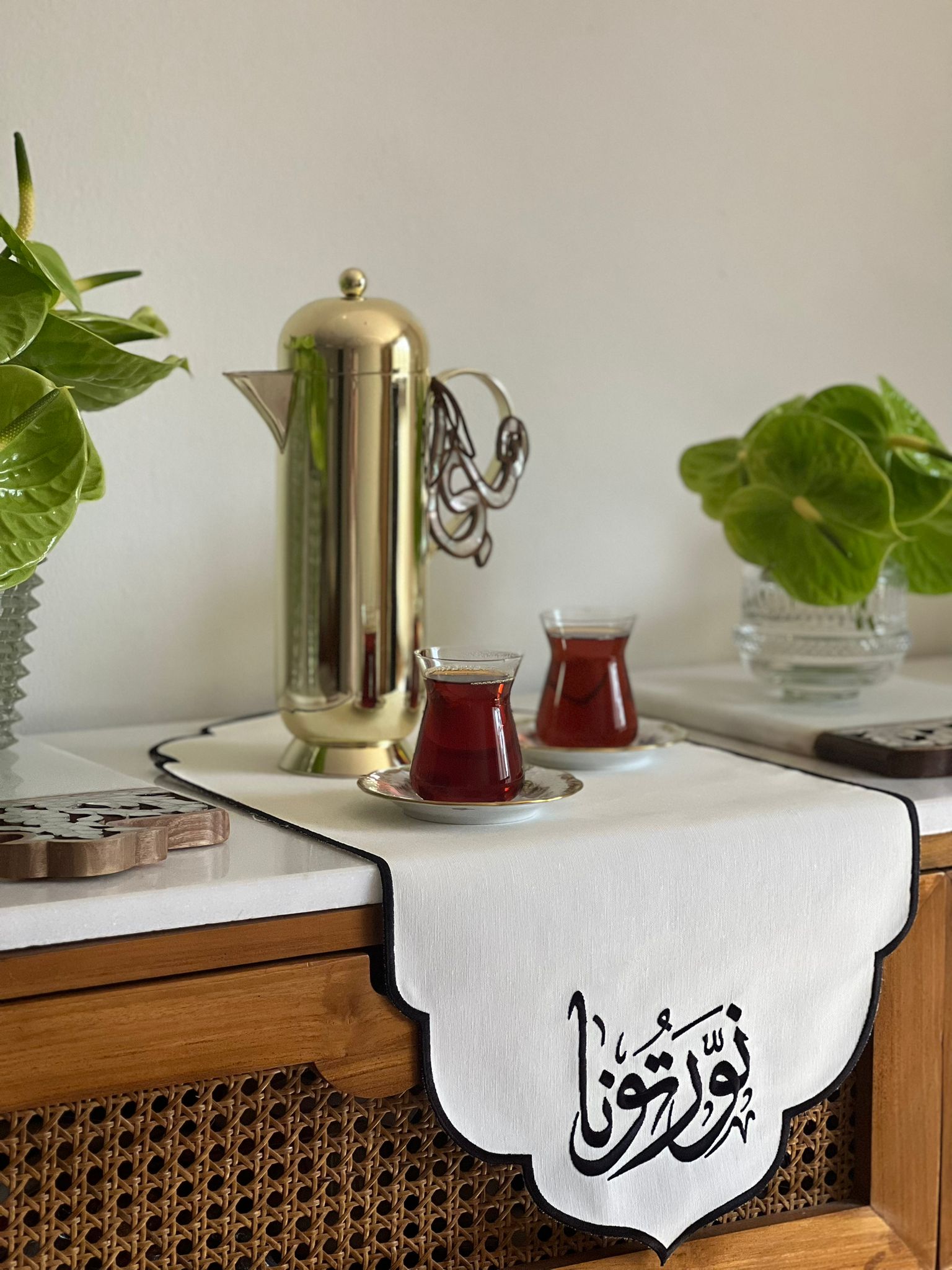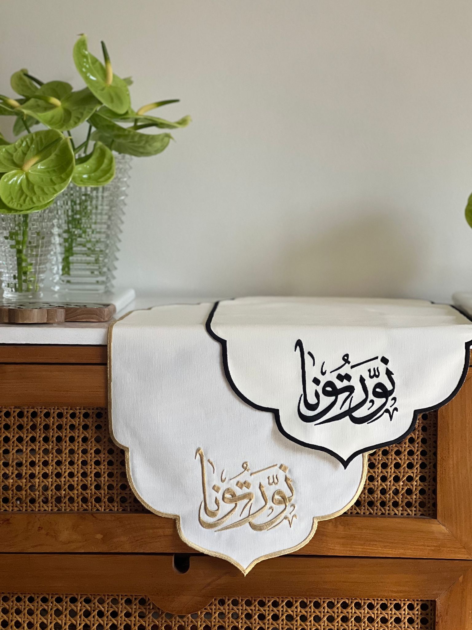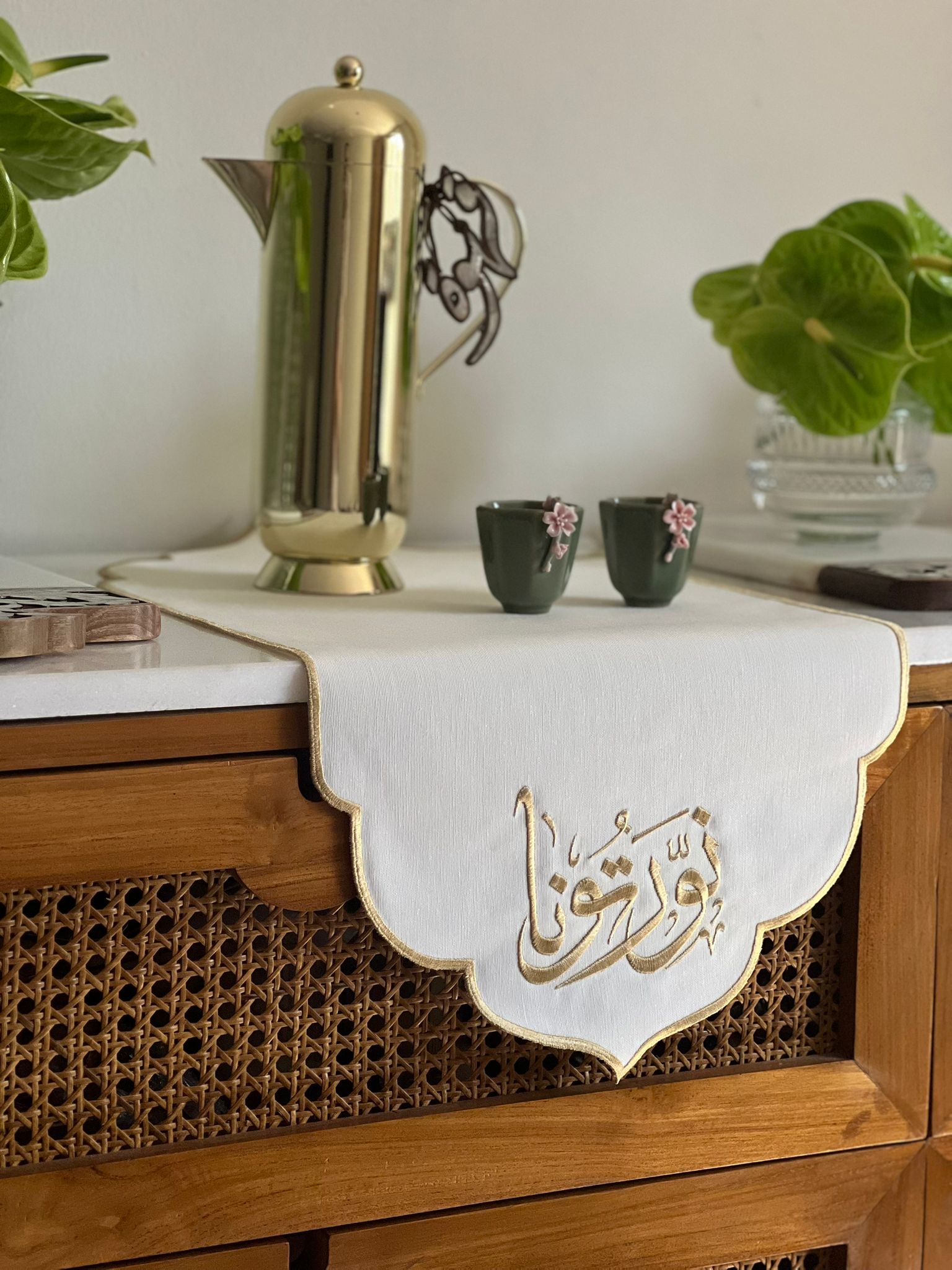 قماش قطن ضد البقع السائلة لون اوف وايت الحجم ٣٥*٧٠ سم تطريز ذهبي حبة واحدة Anti Stain off white fabric Size 35*70 cm Gold Embroidery One Piece